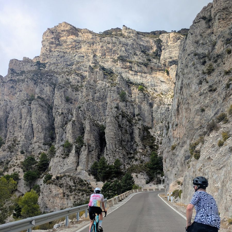 Ein absolutes Sahnestückchen für das 34er Blatt: die Carretera de la Cabra! Vom Meer erst durch Mispelplantagen, dann durch Olivenhaine über Otívar folgen wir der "Cabra" (Ziege) bergauf. Uglaublich schön, spektakulär von grün bis felsig-monumental-schroff. Ihren Namen im Rennradjargon verdankt sie einem Aussichtspunkt (Mirador de Cabra Montés). Nach satten 30 Kletterkilometern haben wir mit dem Alto del Legionario den höchsten Punkt auf 1345m erreicht. Über den Suspiro del Moro geht es ins Lecríntal bergab, vorbei an Pinos del Valle über den Damm des Béznar-Stausees und wieder hinauf in Richtung Lanjarón, dem alten Kurort und Tor zu den herrlichen Alpujarras. Hier übernachten wir zwei Nächte. Übrigens: Am Suspiro baut sich im Osten der Pico del Veleta auf. Aber der kann noch ein paar Tage warten...