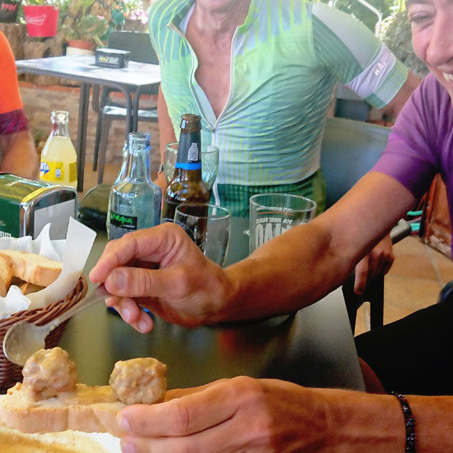 Mehr als Koffein! Natürlich gibt´s allerorten winzige und witzige Bars – Pflichtstops wegen der Rennrad-Etkikette! Neben cortado und Co. animiert der @pausengott auch gern zu Alpujarra-Teller, albóndigas, riesigen bocadillos … Du schaffst das!